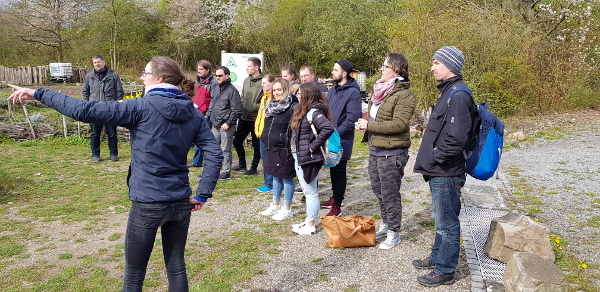 Julia erklärt den Besuchern die Zonen des Gartens.